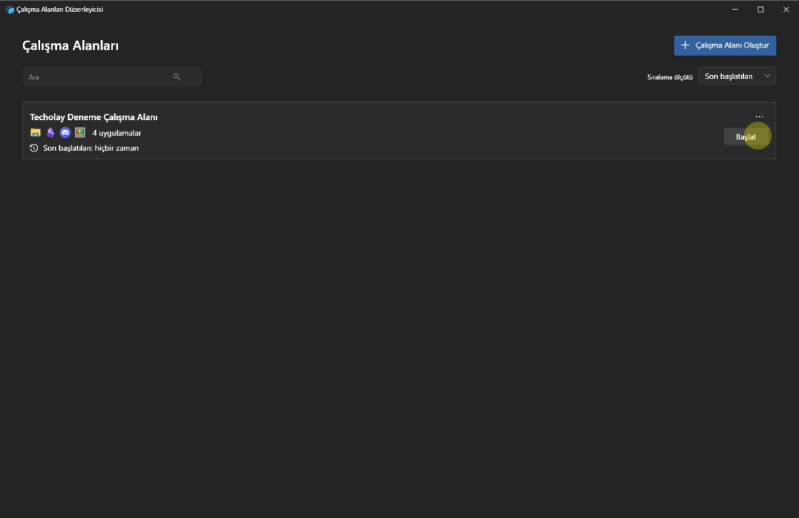 Oluşturduğunuz çalışma alanının sağındaki “Başlat” butonuyla artık o düzeni otomatik olarak uygulayabilirsiniz ya da masaüstünüzdeki kısayolu kullanabilirsiniz.